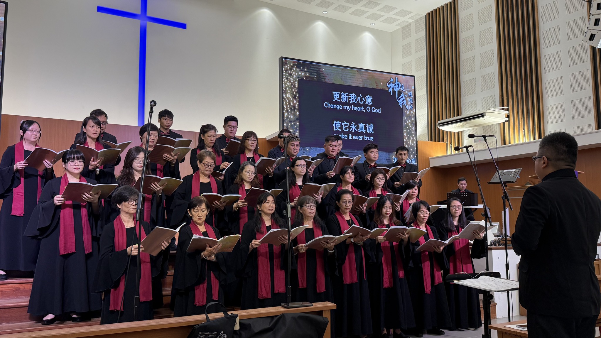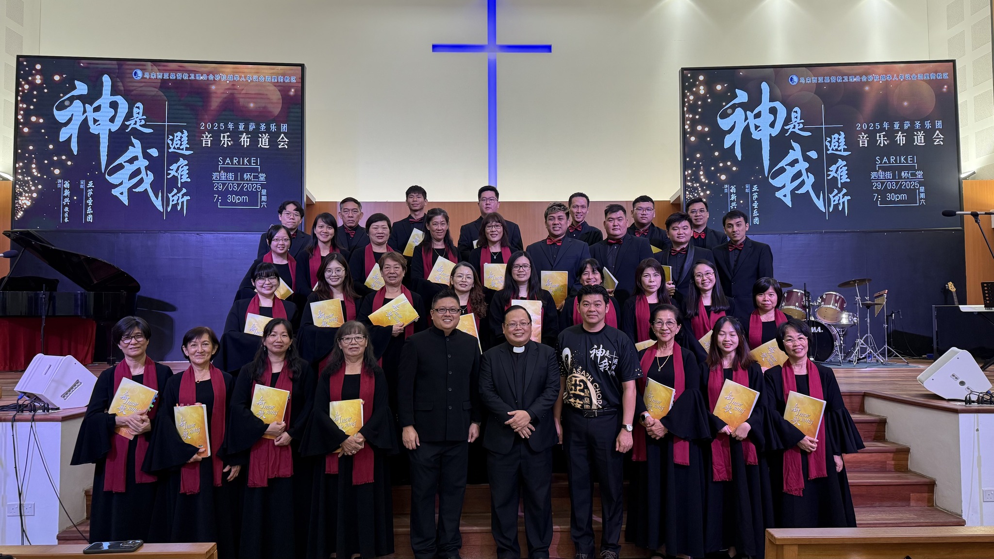泗里街教区亚萨圣乐团于2025年3月29日晚上7时30分,在怀仁堂举办了“神是我避难所”音乐布道会,吸引约150人出席。圣乐团在指挥林国智的带领下,献唱了8首诗歌,曲目选自《新歌4》合唱本。其中,《耶稣诞生》由8位姐妹以二声部方式呈现。