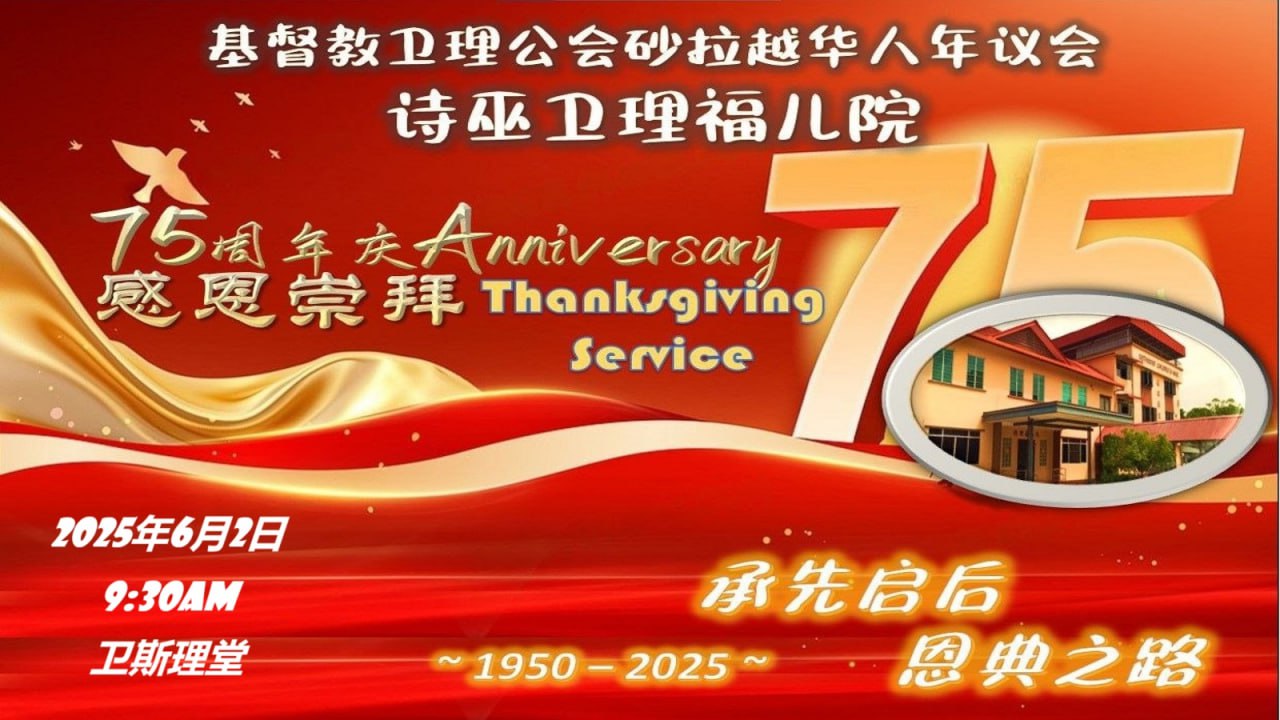 诗巫卫理福儿院将于2025年6月2日(星期一)上午9时30分,假卫斯理堂举行75周年感恩崇拜,主题为:“承先启后,恩典之路”。当日也将举行《鼓岭之女》新书推展礼,以纪念福儿院创办人毕理先生的生平与贡献。