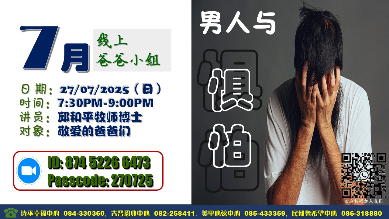 💬 无论你是新手爸爸、经验丰富的父亲,或是在为家庭努力奔走的男人,欢迎您一同上线参加。让我们在彼此的分享中得着安慰,也在上帝的话语中得着信心与盼望。