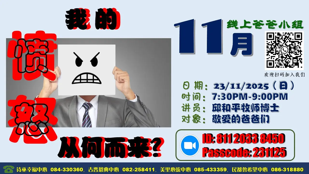 诚邀每一位爸爸线上相聚,一起学习用温柔的力量面对愤怒,在理解与信仰中,成为更有智慧与爱的父亲。