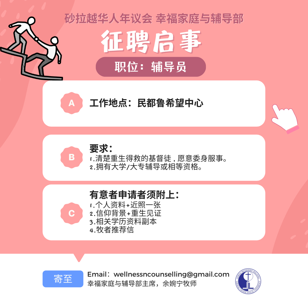 wellnessncounselling@gmail.com 幸福家庭与辅导部主席,余婉宁 牧师